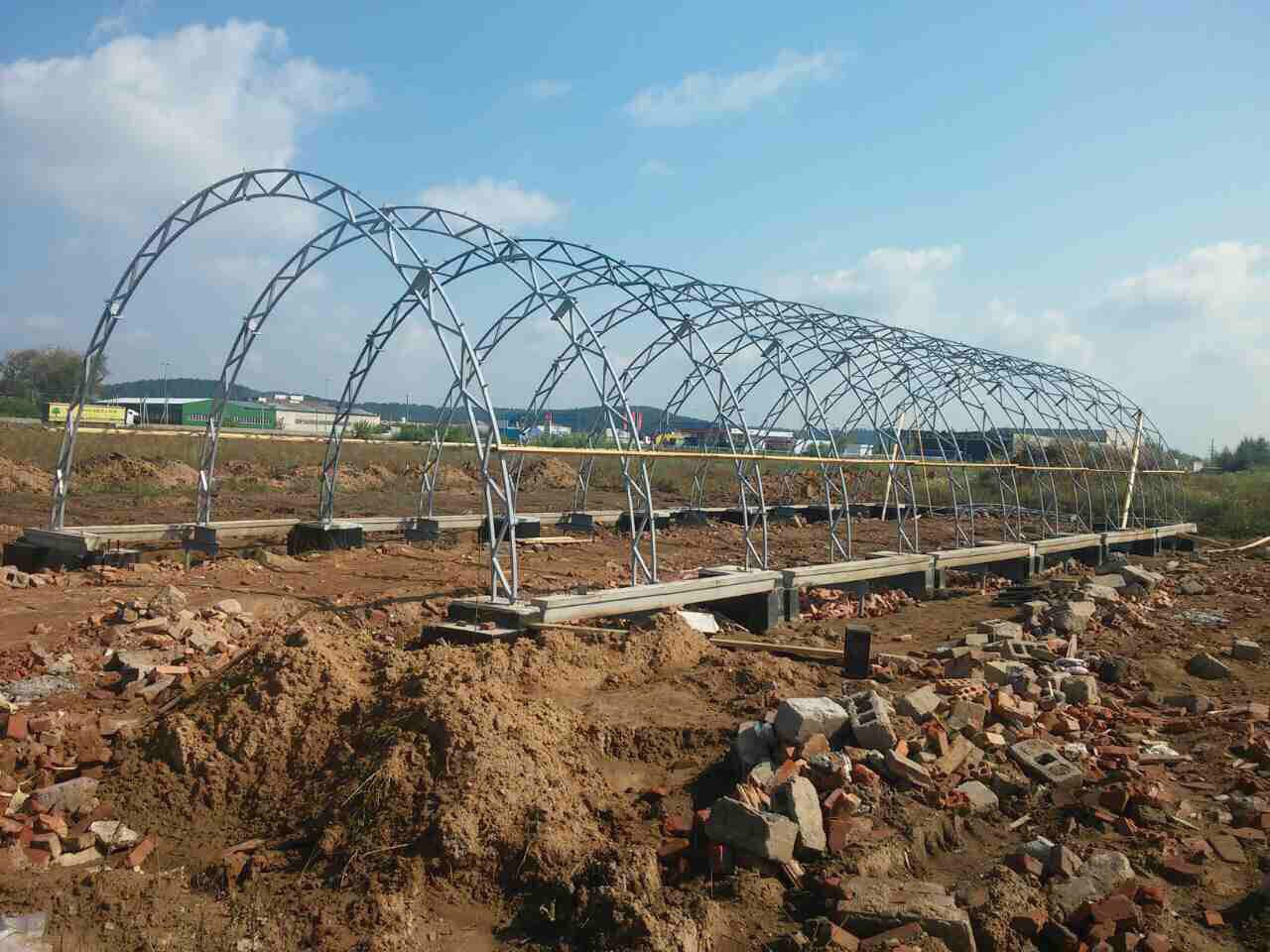 - Строительство трех арочных каркасных ангаров 12*54